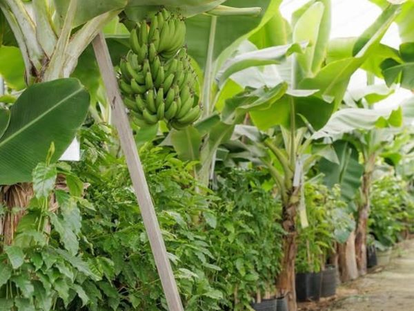 バナナの木の下にはコーヒーの木が植えられています