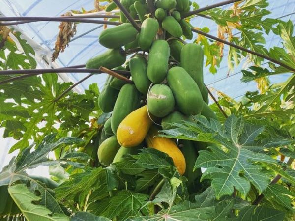 パパイヤが文字通り、鈴なり!